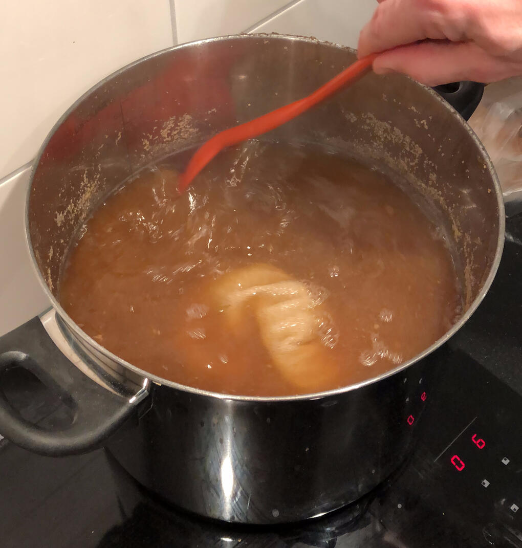 Dit was onze eerste kennismaking met brouwen en is geen succes geworden, er is iets fout gegaan bij het vergisten, we vergisten ons, en hebben het weggegooid.Deze hebben we recent nog een keer gemaakt en is net gebotteld.